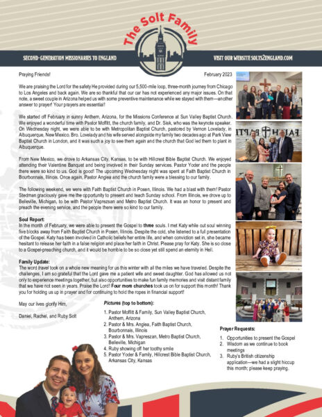 View Larger Image Daniel Solt February 2023 Prayer Letter – Revised Proofreader2023-03-13T18:04:06-05:00March 13th, 2023| Share with others. FacebookXLinkedInEmail