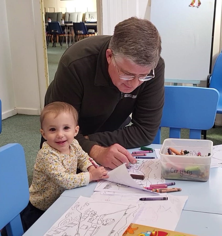 - Ruby is coloring–her new favorite pastime–with Grandpa.