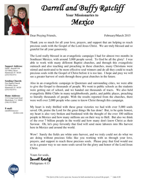 View Larger Image Darrell Ratcliff Feb-Mar 2015 Prayer Letter Proofreader2015-04-01T09:34:37-05:00April 1st, 2015| Share with others. FacebookXLinkedInEmail