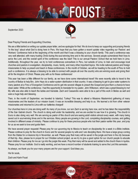 View Larger Image Zach Foust Sr. September 2023 Prayer Letter Proofreader2023-10-07T15:41:39-05:00October 7th, 2023| Share with others. FacebookXLinkedInEmail