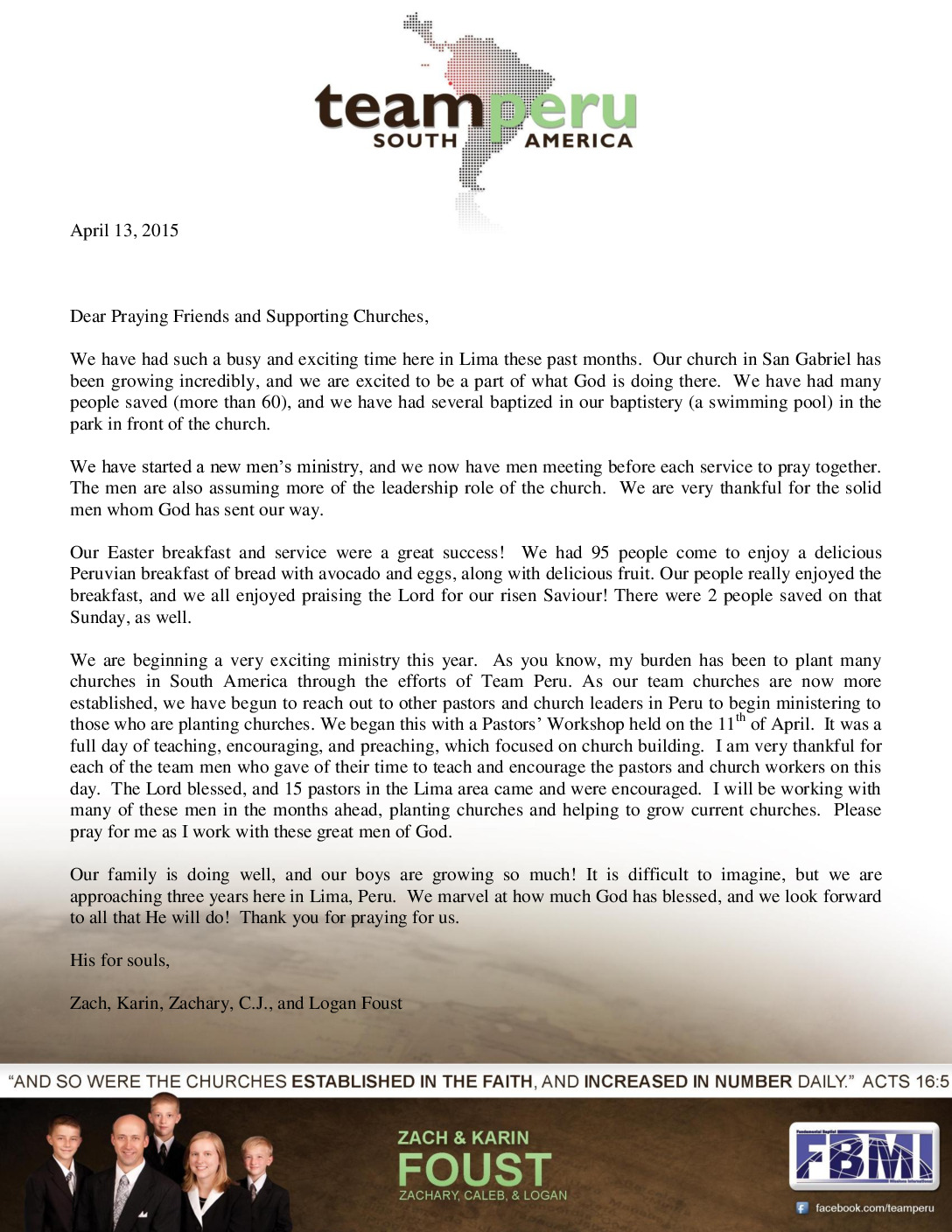 Zach Foust April 2015 Prayer Letter
