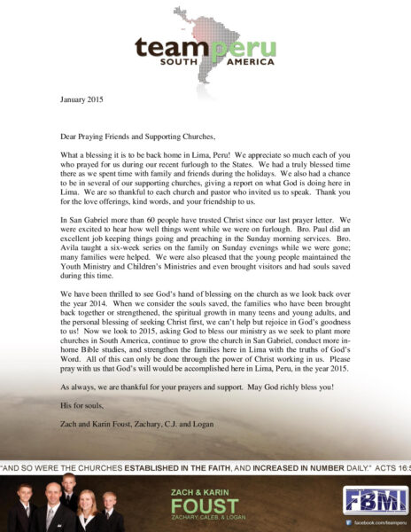 View Larger Image Zach Foust January 2015 Prayer Letter Proofreader2015-01-08T21:35:39-06:00January 8th, 2015| Share with others. FacebookXLinkedInEmail