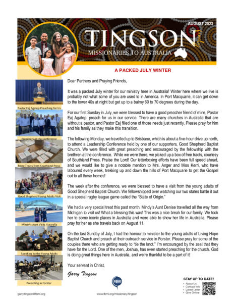 View Larger Image Garry Tingson August 2023 Prayer Letter Proofreader2023-08-07T09:36:44-05:00August 7th, 2023| Share with others. FacebookXLinkedInEmail