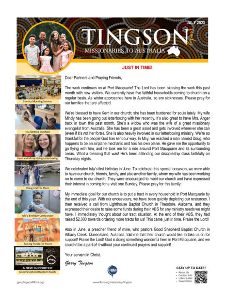 View Larger Image Garry Tingson July 2023 Prayer Letter Proofreader2023-07-14T16:42:22-05:00July 14th, 2023| Share with others. FacebookXLinkedInEmail