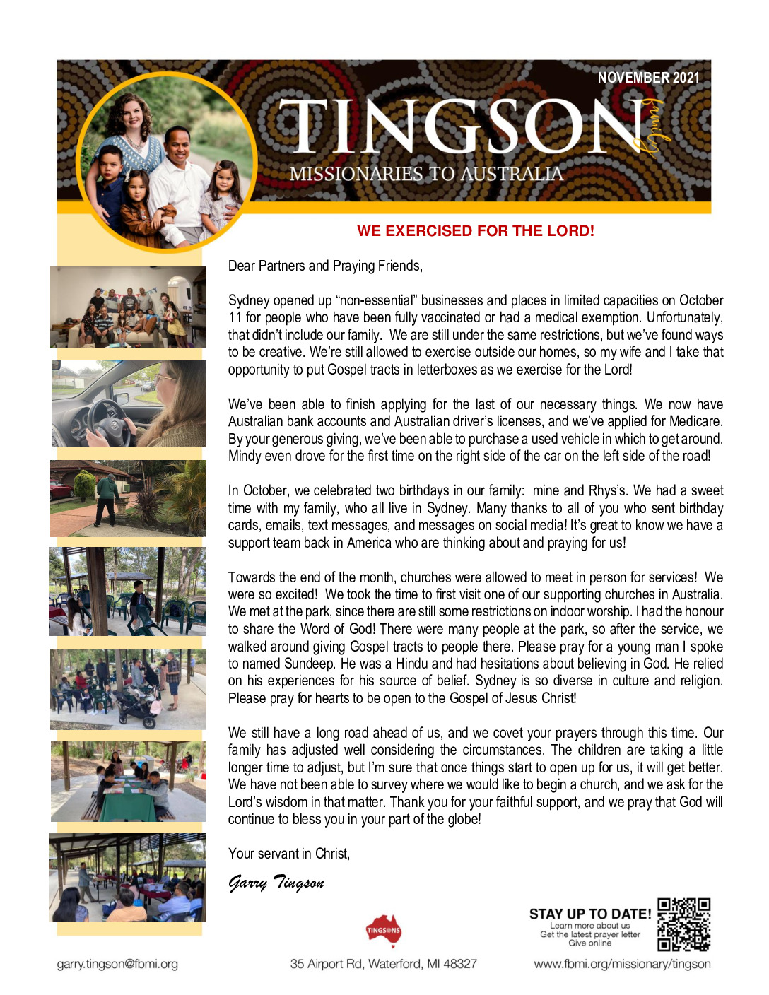 View Larger Image Garry Tingson November 2021 Prayer Letter Proofreader2021-11-04T15:47:23-05:00November 4th, 2021| Share with others. FacebookXLinkedInEmail