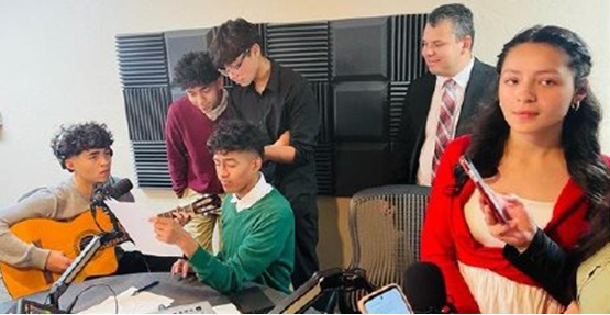 Fabio Betancourth, Spanish pastor of the Bible Baptist Church in Bradenton, Florida, encouraged his teens to produce a live Christmas program for La Luz Latina, CRI’s flagship radio station for the Spanish world. The teens played the guitar, sang, and testified. (The participants were Isaac, Daniel, and Jeremias Aragon; Luis Martinez; Pastor Betancourth; Esther, Ana, and Elizabeth Betancourth.)