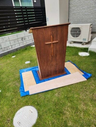 We also mentioned in our previous report about the arrival of Bro. Vince Roberts from one of our supporting churches, the Faith Baptist Church of Oak Creek, Wisconsin. He is a former missionary to Japan, who also came to help us last fall. We have been blessed once again by his labor and fellowship for another three weeks. During his time here, he used his craft in carpentry to build us multiple new shelves around our house, a cross for our rented auditorium, and a custom pulpit for our services that is wide enough to support multiple Bibles and hymnals for our bi-lingual services, light enough to be portable as we switch auditoriums between our Sunday services, and short enough for my stature (which, as many of you might remember, was not always the case on deputation!) We are beyond thankful for his labor here. Sunday, October 6, was the first day I had the privilege of using this beautiful, brand-new pulpit. We had Bro. Vince share his salvation testimony bi-lingually, as God allowed him to retain much of his Japanese. On that day, God gave us 3 first-time visitors, as well as a returning visitor!
