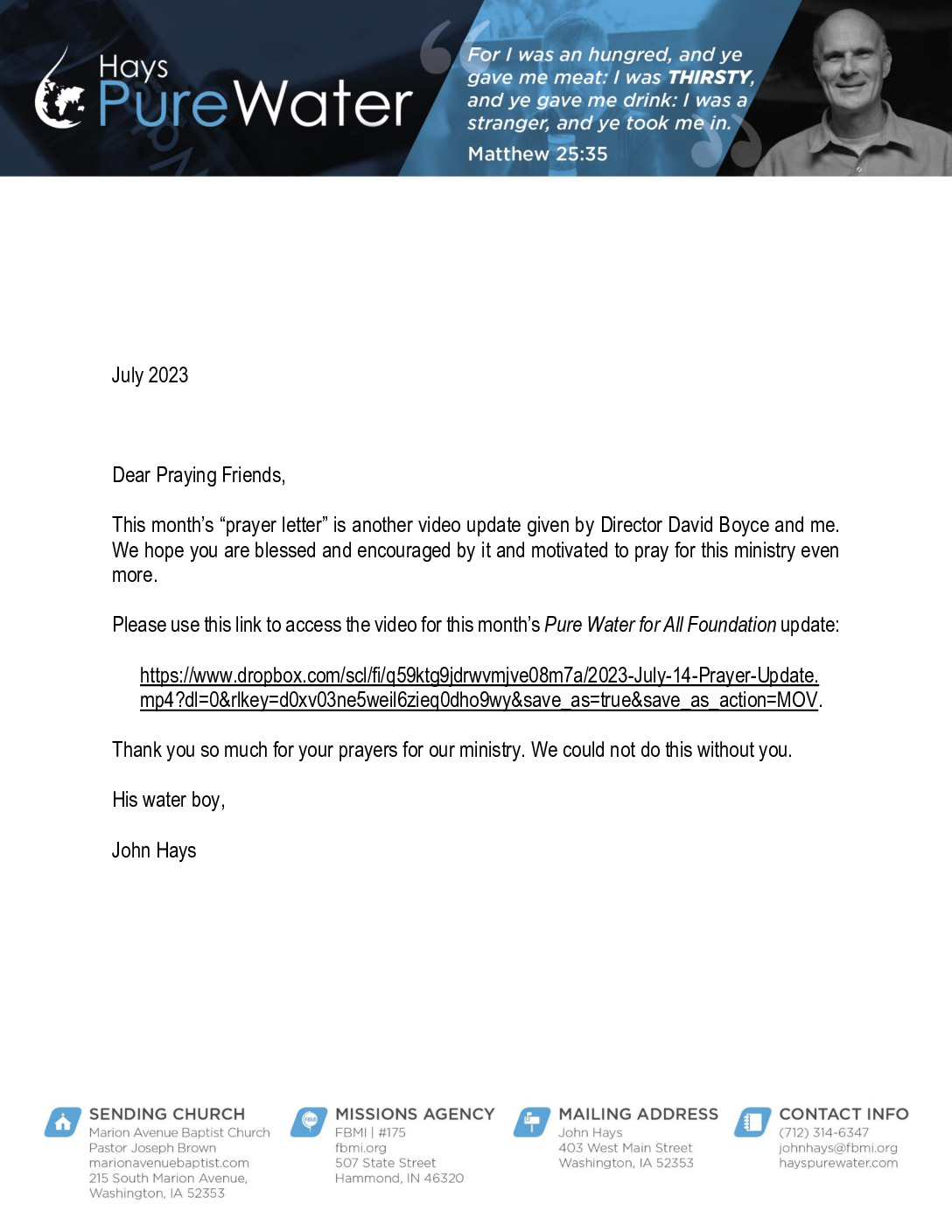 View Larger Image John Hays July 2023 Prayer Letter Proofreader2023-07-20T18:50:07-05:00July 20th, 2023| Share with others. FacebookXLinkedInEmail