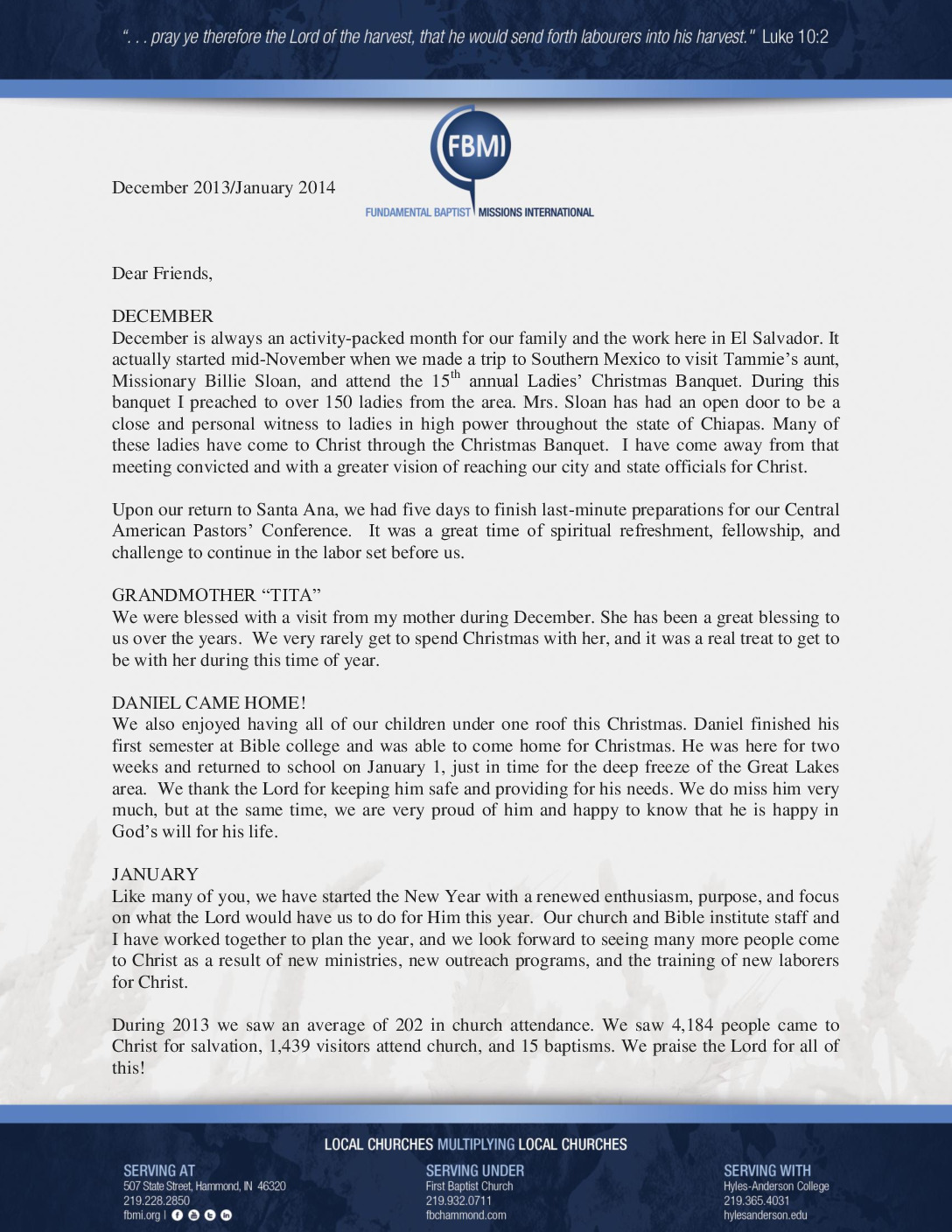 View Larger Image Dec 2013-Jan 2014 Prayer Letter on FBMI Letterhead Proofreader2014-02-13T10:54:00-06:00February 13th, 2014| Share with others. FacebookXLinkedInEmail