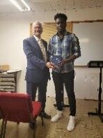Prior to my trip in June, I was back in my home church for a few weeks. I have mentioned in the past that I teach a Sunday school class for French-speaking people when home. These are people primarily from either Haiti or the Congo (known as Zaire in the past and the DRC now). On a follow-up visit, I was able to visit a Haitian, Garvens Pierre, at his house. Thankfully, he allowed me to witness to him, and I was able lead Garvens to Christ. He has been coming to church faithfully for some time now. Pray that Garvens gets baptized soon. Here he is receiving a Bible for faithful attendance.