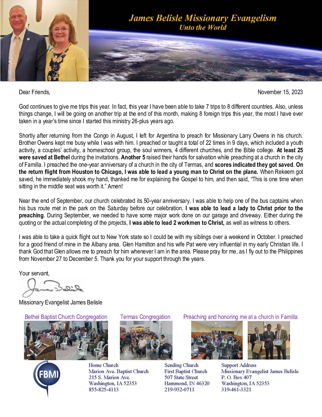 View Larger Image James Belisle November 2023 Prayer Letter – Revision Proofreader2023-11-14T11:50:10-06:00November 14th, 2023| Share with others. FacebookXLinkedInEmail