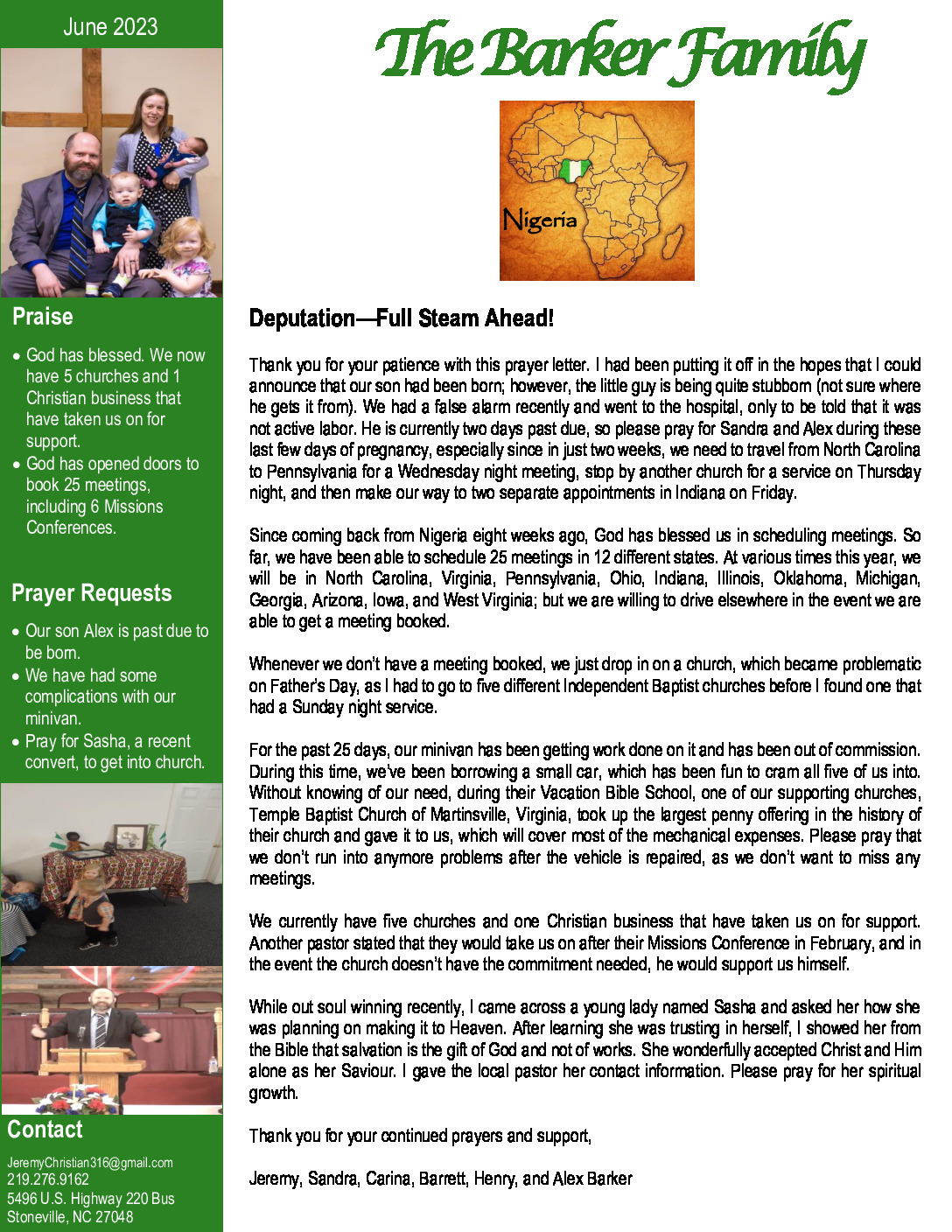 View Larger Image Jeremy Barker June 2023 Prayer Letter Proofreader2023-08-07T20:23:28-05:00August 7th, 2023| Share with others. FacebookXLinkedInEmail
