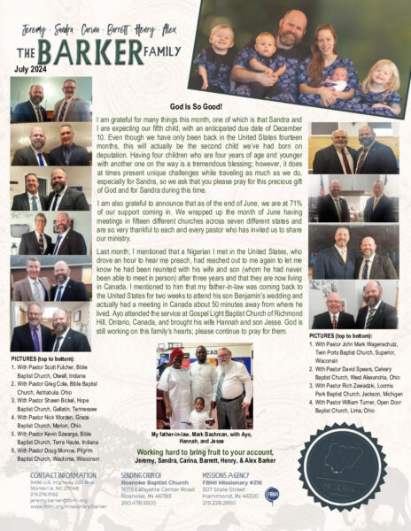 View Larger Image Jeremy Barker July 2024 Prayer Letter Proofreader2024-07-10T09:20:38-05:00July 10th, 2024| Share with others. FacebookXLinkedInEmail