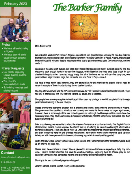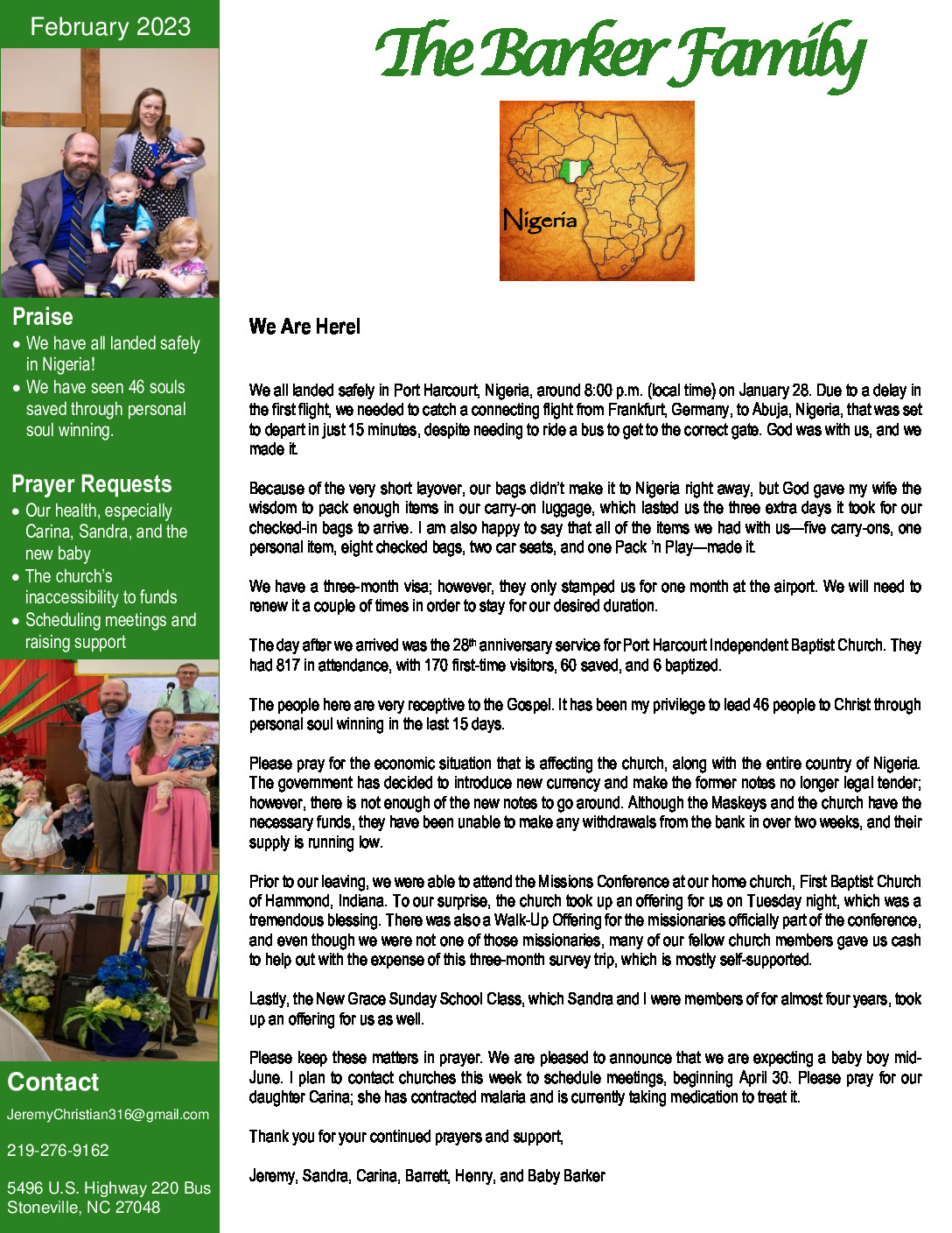 View Larger Image Jeremy Barker February 2023 Prayer Letter Proofreader2023-08-07T11:09:51-05:00August 7th, 2023| Share with others. FacebookXLinkedInEmail