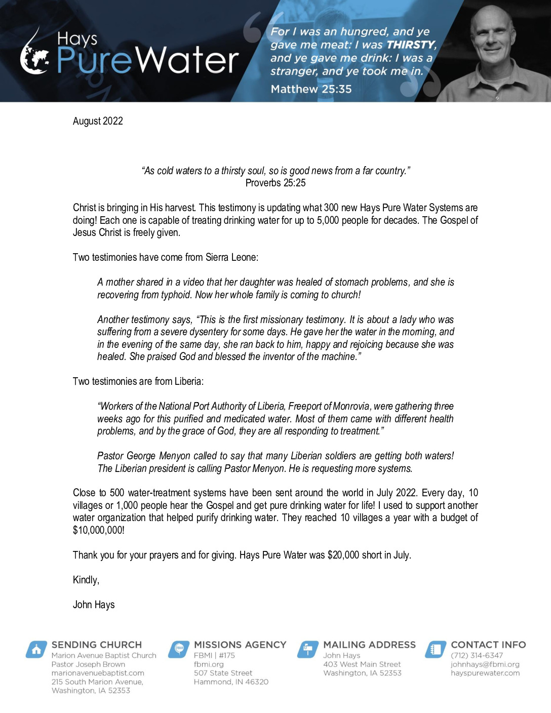 • View Larger Image thumbnail of John Hays August 2022 Prayer Letter