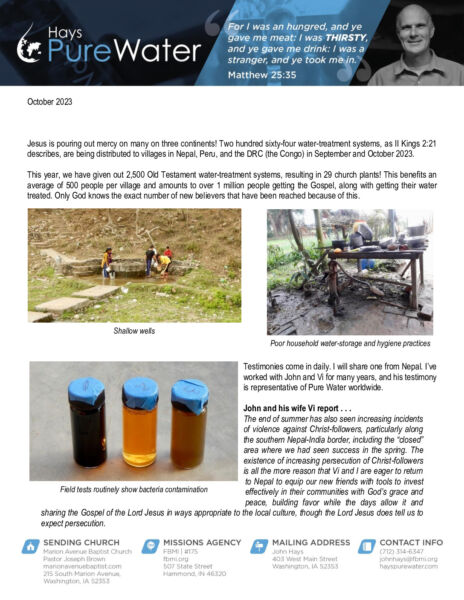 View Larger Image John Hays October 2023 Prayer Letter – Revision Proofreader2023-10-03T13:37:08-05:00October 3rd, 2023| Share with others. FacebookXLinkedInEmail