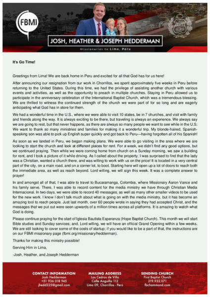 View Larger Image Josh Hedderman September 2023 Prayer Letter Proofreader2023-09-12T19:31:26-05:00September 12th, 2023| Share with others. FacebookXLinkedInEmail
