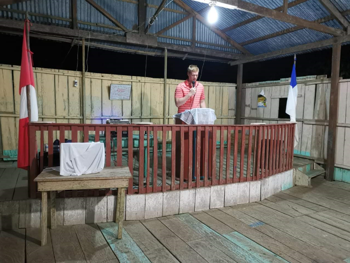 As mentioned in the last letter, in February we took 10 church members on a missions trip to the jungle. We flew to the city of Iquitos and then traveled 18 hours in a boat to get to the last little village on the River Maratí, one of the branch-offs of the Amazon River. There, we had a mini-conference with 5-6 other villages, preaching, training, and working with them. We were able to teach them about how to go soul winning, and then we taught about eternal security. One of the men who was with us was the director of the music in a well-known church in Iquitos, but he confided in me that he had been struggling with the security of his salvation. He got the reassurance of his salvation, and watching the joy on his face was incredible. I had the privilege to baptize 6 new converts in the river, which was an unforgettable experience! While baptizing the third convert, the mud under my feet gave way, and I went in with her! I tried to count it as baptizing myself but was later informed that that is not how it works.