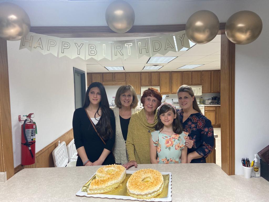 - Celebrating Amy’s grandmother’s 90th birthday with Esther and other family members