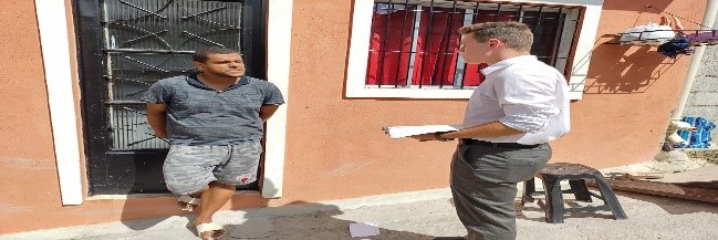 - Juan sharing the Gospel with a man at his door.