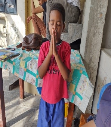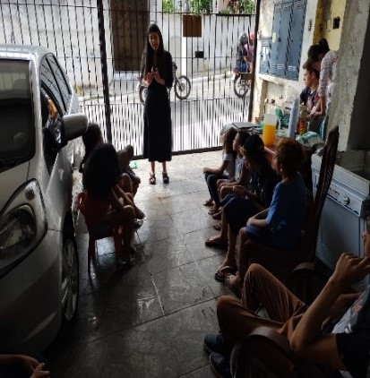 - The children enjoy Bible Club each Saturday on Maria’s carport.