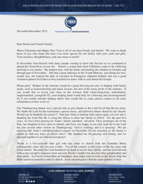 Nov-Dec 2013 Prayer Letter on Letterhead