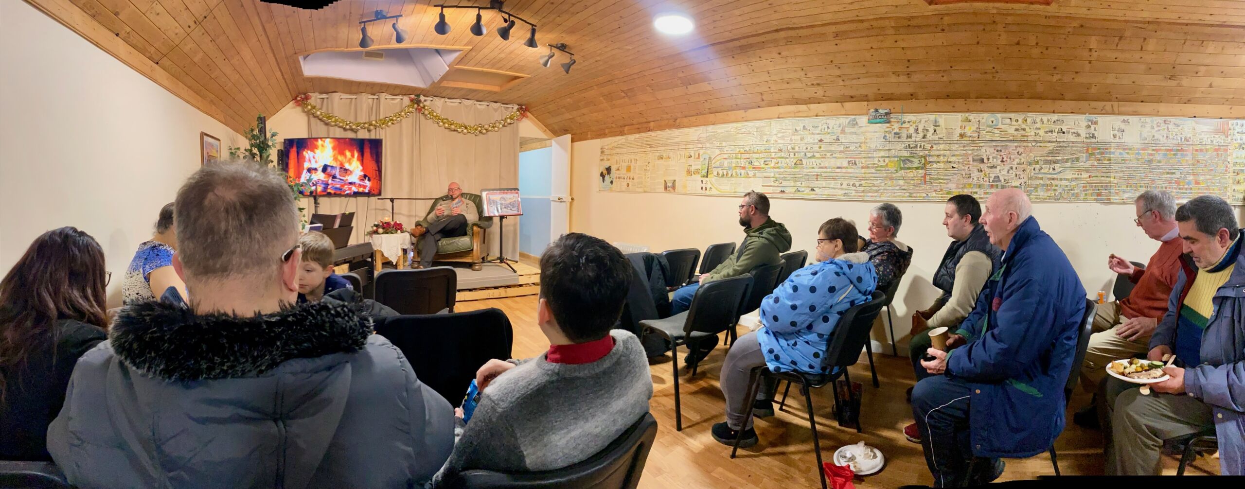 I tried to get everything sorted for the advertising, and I texted one of our ladies to see if she would be willing to create an advertisement for the Christmas Eve Service, which she agreed to do. The Devil intervened again when the lady thought I wanted her to make her own video, but I was planning to record it that next Sunday and just wanted to see if she would be willing. She almost didn’t come to church that next Sunday because she thought she had let me down and couldn’t face me. Thankfully, she didn’t follow her emotions. When she discovered that I had it all ready to record on Sunday, she was delighted, and her daughter made a video as well. I edited them and got the videos uploaded and the Facebook ad set up and ready to go. Soon after on Saturday, the 13th, Keith II returned home from Bible college. Then on Sunday afternoon, we went to Grace Baptist Church’s evening service in Galway, and they also treated everyone to pizza to celebrate Keith’s return. We stayed overnight to use a free hotel night to stay over and to go to the Christmas Market. On the next day, Monday, the advert was supposed to start running, and by 11:00 a.m., we already had 10 people signed up to come to the Christmas Eve Service. We had a lovely time in Galway and returned home with only a week to get everything on our property ready for the Christmas Eve Service. The other problem was that the tree surgeons had left a large mess in addition to its being mud season, so we had an incredible number of preparations to do to make things welcoming for our visitors. By the Sunday before Christmas Eve, we had 35 people signed up, only 15 parking spaces, and no road parking. There was no guarantee these people would come, but if all of them came as single people, we could not fit them all. The church people worked together to prepare 35 visitor packets. A new road sign and banner sign for the doorway arrived just in time, so that was a relief. Because I was concerned about the number of people who had signed up to attend, I called a hotel, but they closed on Christmas Eve at 6:00 p.m. I also contacted a local meeting hall and never received a reply, so we had no other options but the building on our property. When Christmas Eve arrived, we had 42 people signed up, so I had the church people park as far back on the property as they could. Suddenly, I was getting texts that people were in the hospital. One lady broke her ribs and couldn’t come. Some didn’t have transportation, and others just never responded to follow-up texts after they signed up. We were supposed to start at 6:00 p.m., but we waited outside until 6:20 to greet visitors, but none came. As soon as we went inside, I got a phone call from people asking if we were having the service. They told me they had driven up to the property and then driven to the back, but because there were no cars, they left. They asked if the service had already started. I told them that we were just about to start and they were welcome, but they said they decided to just head home and then hung up. I then asked Kelly to wait outside, because I needed to get started, and thankfully, I did because 10 minutes later, another car pulled up with 4 visitors, and she was able to guide them to parking. We were told that because of the winter darkness on our road, people found it very difficult to find, even with GPS. Despite all the spiritual opposition, it was a great night. I was concerned about boredom during the story, but as I sat in a living room chair and read with a crackling fire on the TV screen, everyone listened intently. We ended up having 5 first-time visitors that night and 40 total whom we made direct contact with online. The Day family and one of their church people helped as well in a tremendous way. On New Year’s Eve, we had our regular Bible study and then a Watch Night Service with games, prizes, praise times, hymns, and Creation videos; and then we prayed in the New Year together.