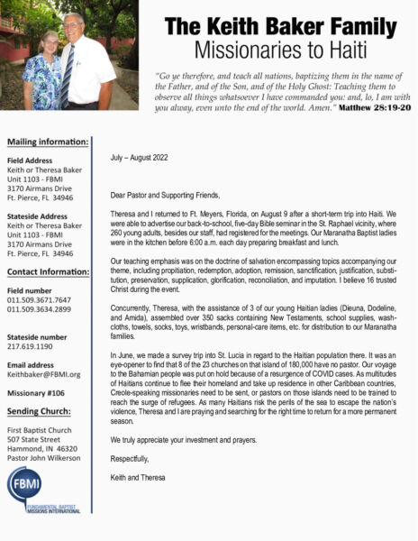 View Larger Image Keith Baker Jul-Aug 2022 Prayer Letter Proofreader2022-08-17T11:12:58-05:00August 17th, 2022| Share with others. FacebookXLinkedInEmail