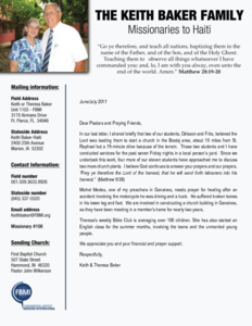 Michel Medes, one of my preachers in Gonaives, needs prayer for healing after an accident involving the motorcycle he was driving and a truck. He suffered broken bones in his lower leg and foot. We are involved in constructing a church building in Gonaives, as they have been meeting in a member’s home for nearly two years.