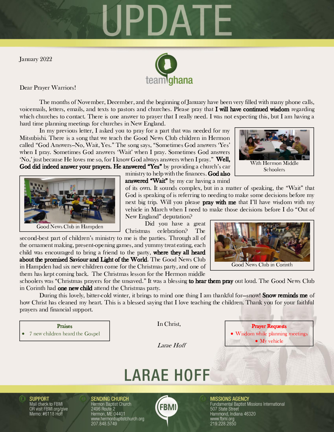 View Larger Image Larae Hoff January 2022 Prayer Letter – Revised Proofreader2022-02-08T09:38:06-06:00February 8th, 2022| Share with others. FacebookXLinkedInEmail