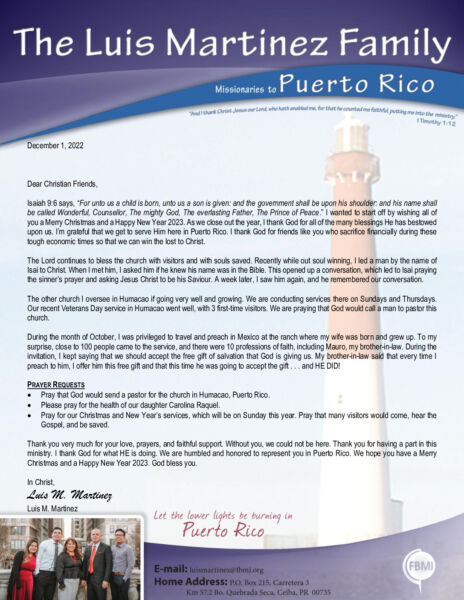 View Larger Image Luis Martinez December 2022 Prayer Letter Proofreader2022-12-07T10:03:55-06:00December 7th, 2022| Share with others. FacebookXLinkedInEmail