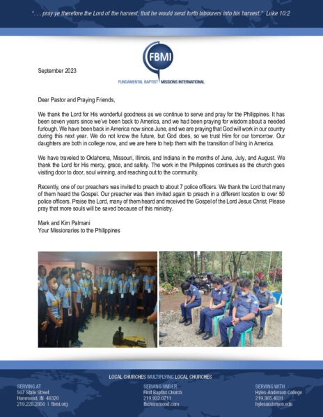 View Larger Image Mark Palmani September 2023 Prayer Letter – Revised Proofreader2023-10-04T08:55:28-05:00October 4th, 2023| Share with others. FacebookXLinkedInEmail