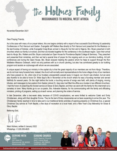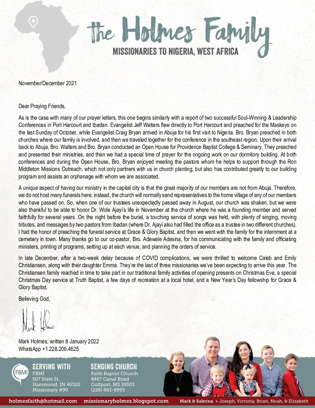View Larger Image Mark Holmes Nov-Dec 2021 Prayer Letter Proofreader2022-01-19T17:20:31-06:00January 19th, 2022| Share with others. FacebookXLinkedInEmail