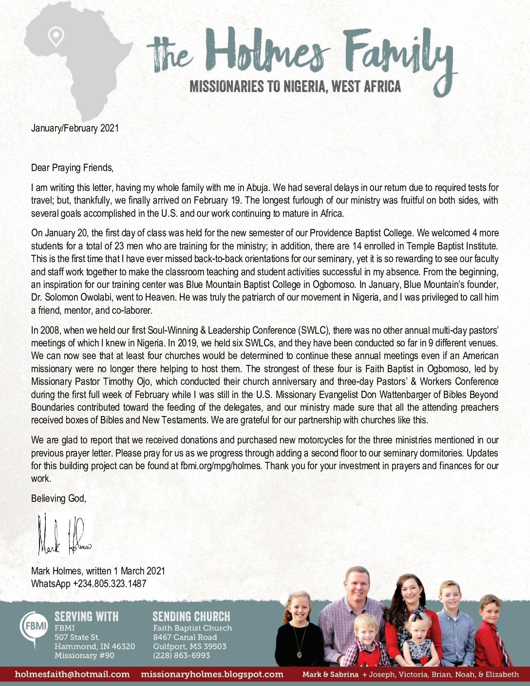 View Larger Image Mark Holmes Jan-Feb 2021 Prayer Letter Proofreader2021-03-04T12:02:58-06:00March 4th, 2021| Share with others. FacebookXLinkedInEmail