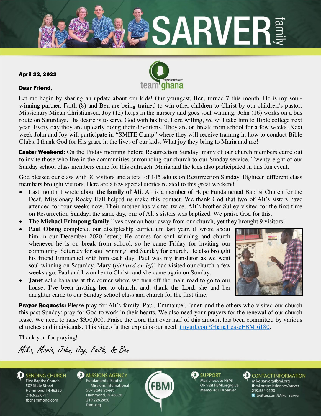 View Larger Image Mike Sarver April 2022 Prayer Letter Proofreader2022-04-26T19:45:13-05:00April 26th, 2022| Share with others. FacebookXLinkedInEmail