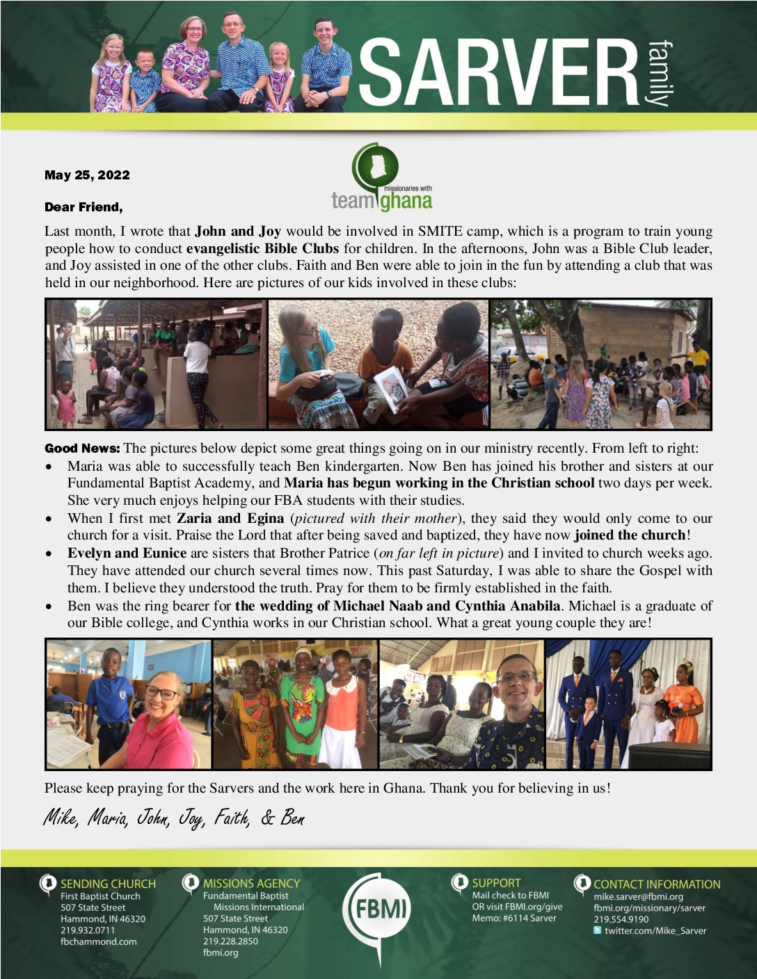 View Larger Image Mike Sarver May 2022 Prayer Letter Proofreader2022-05-31T14:46:10-05:00May 31st, 2022| Share with others. FacebookXLinkedInEmail
