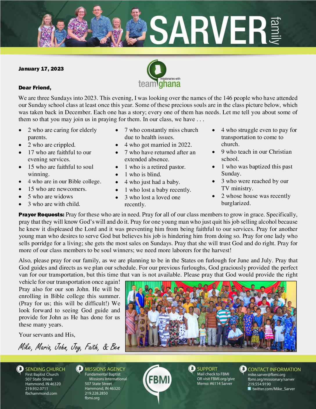 • View Larger Image thumbnail of Mike Sarver January 2023 Prayer Letter