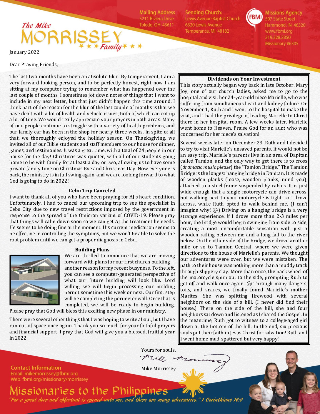 • View Larger Image thumbnail of Mike Morrissey January 2022 Prayer Letter