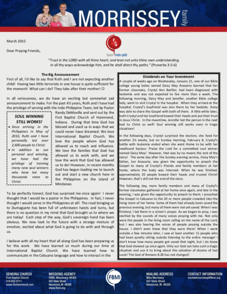 View Larger Image Michael Morrissey February 2015 Prayer Letter Proofreader2015-03-05T13:05:30-06:00March 5th, 2015| Share with others. FacebookXLinkedInEmail