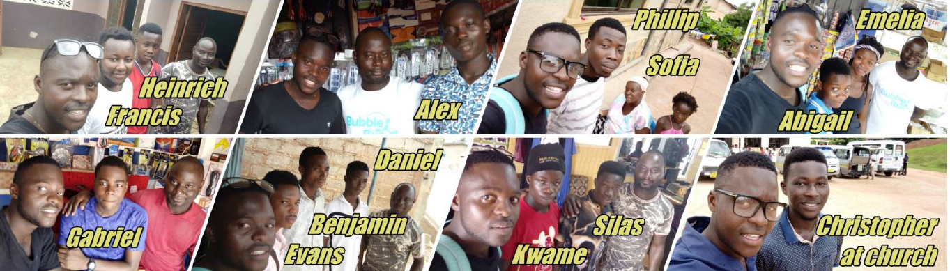 Then back in April of this year, Patrice started going soul winning with me and my class member Samson on Saturdays. We won several to Christ and had several visitors in April and May before I left for the States. While I was in the States, Patrice and Samson continued soul winning. Some of their recent converts are labeled in the pictures below. (Patrice is on the left in each picture. You will find Samson in some of the pictures.)