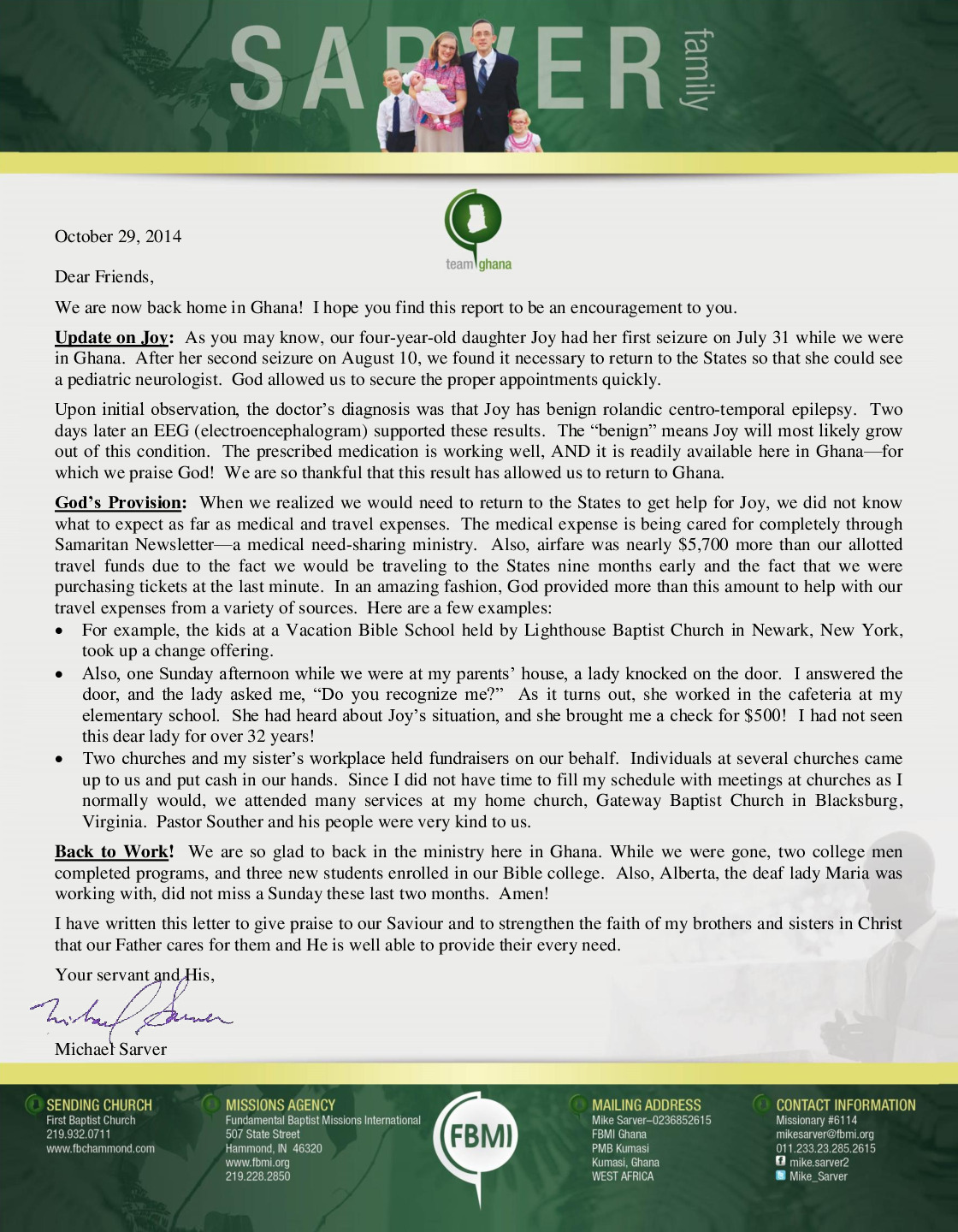 View Larger Image Mike Sarver October 2014 Prayer Letter Proofreader2014-11-11T14:29:19-06:00November 11th, 2014| Share with others. FacebookXLinkedInEmail