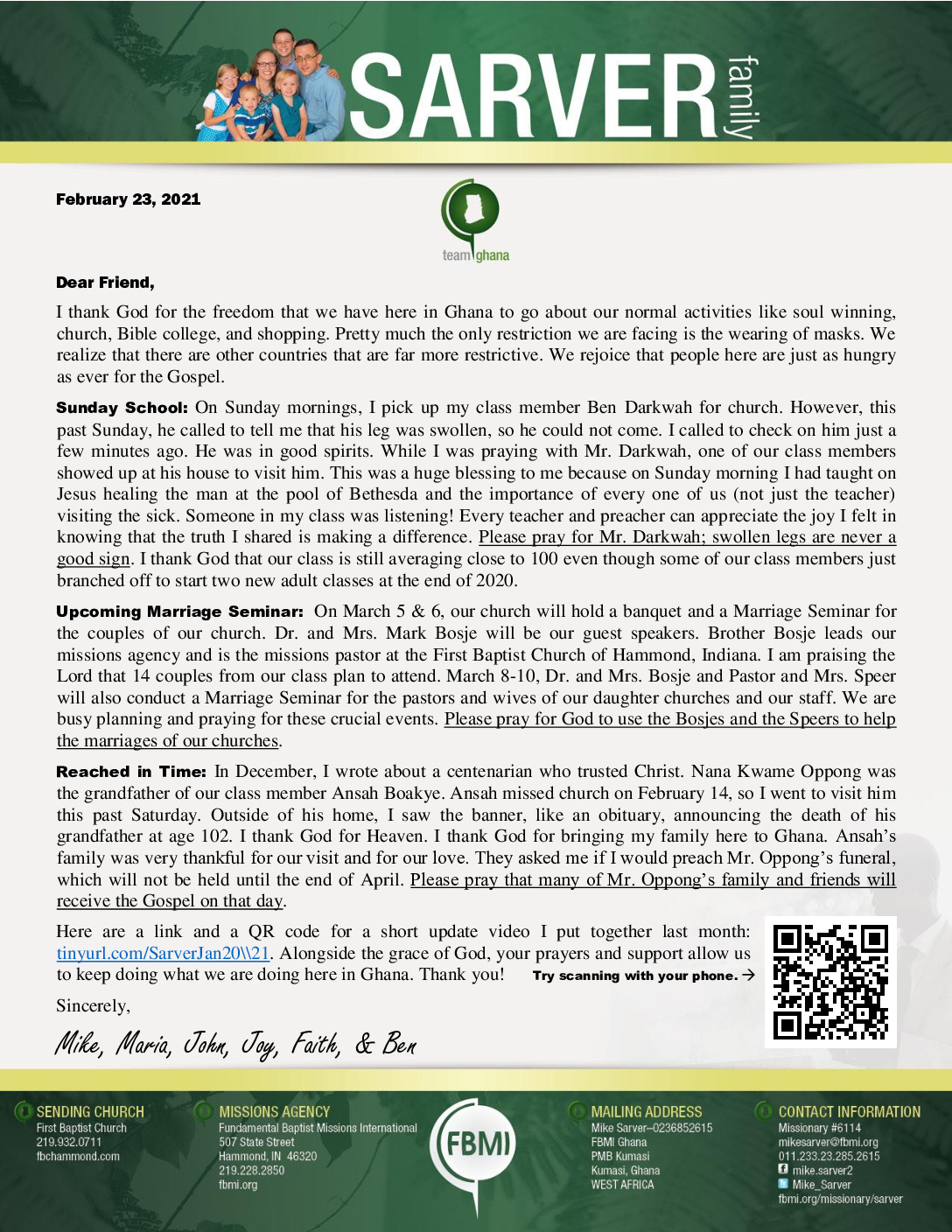 View Larger Image Mike Sarver February 2021 Prayer Letter – Revised Proofreader2021-02-27T11:32:01-06:00February 27th, 2021| Share with others. FacebookXLinkedInEmail