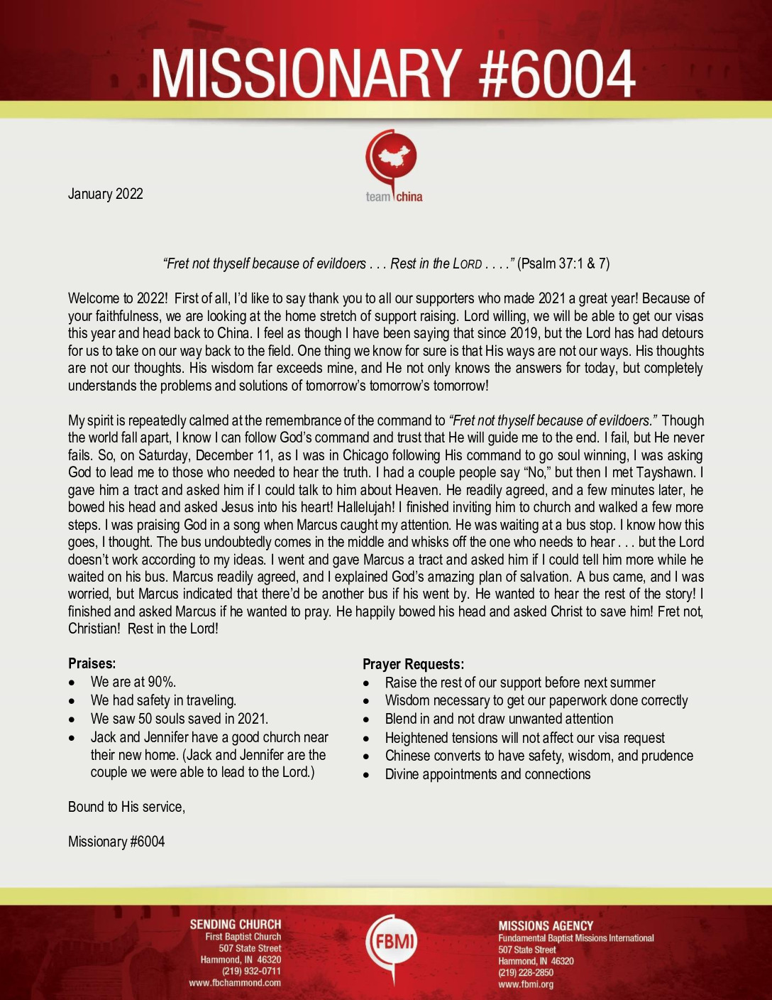 Get any FBMI missionary's prayer letters emailed to you, or get all prayer letters daily or weekly.