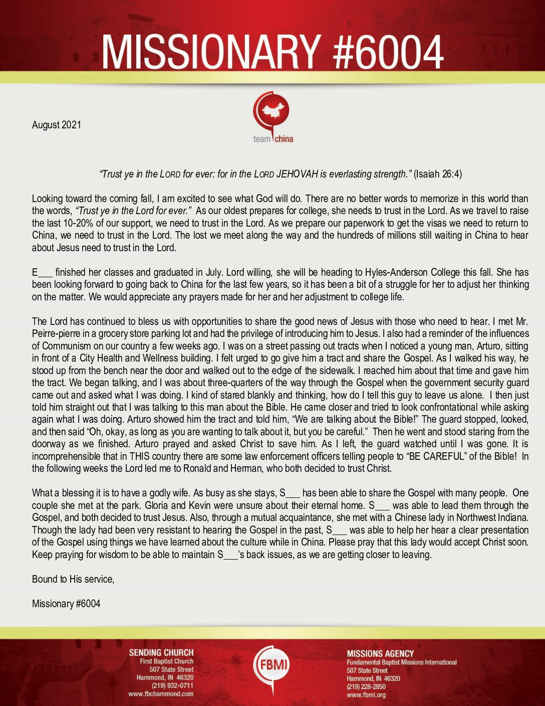 Get any FBMI missionary's prayer letters emailed to you, or get all prayer letters daily or weekly.
