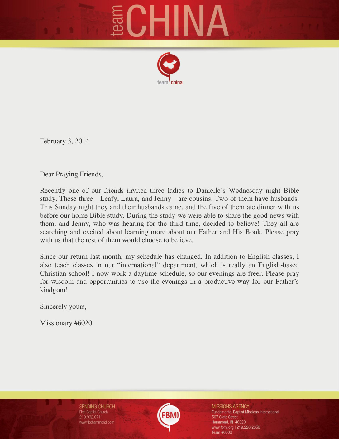View Larger Image February 2014 Prayer Letter on Letterhead-2 Proofreader2014-03-03T19:00:08-06:00March 3rd, 2014| Share with others. FacebookXLinkedInEmail