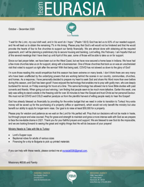 Get any FBMI missionary's prayer letters emailed to you, or get all prayer letters daily or weekly.
