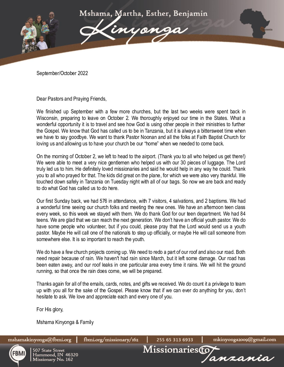 View Larger Image Mshama Kinyonga Sep-Oct 2022 Prayer Letter Proofreader2022-10-19T09:55:58-05:00October 19th, 2022| Share with others. FacebookXLinkedInEmail