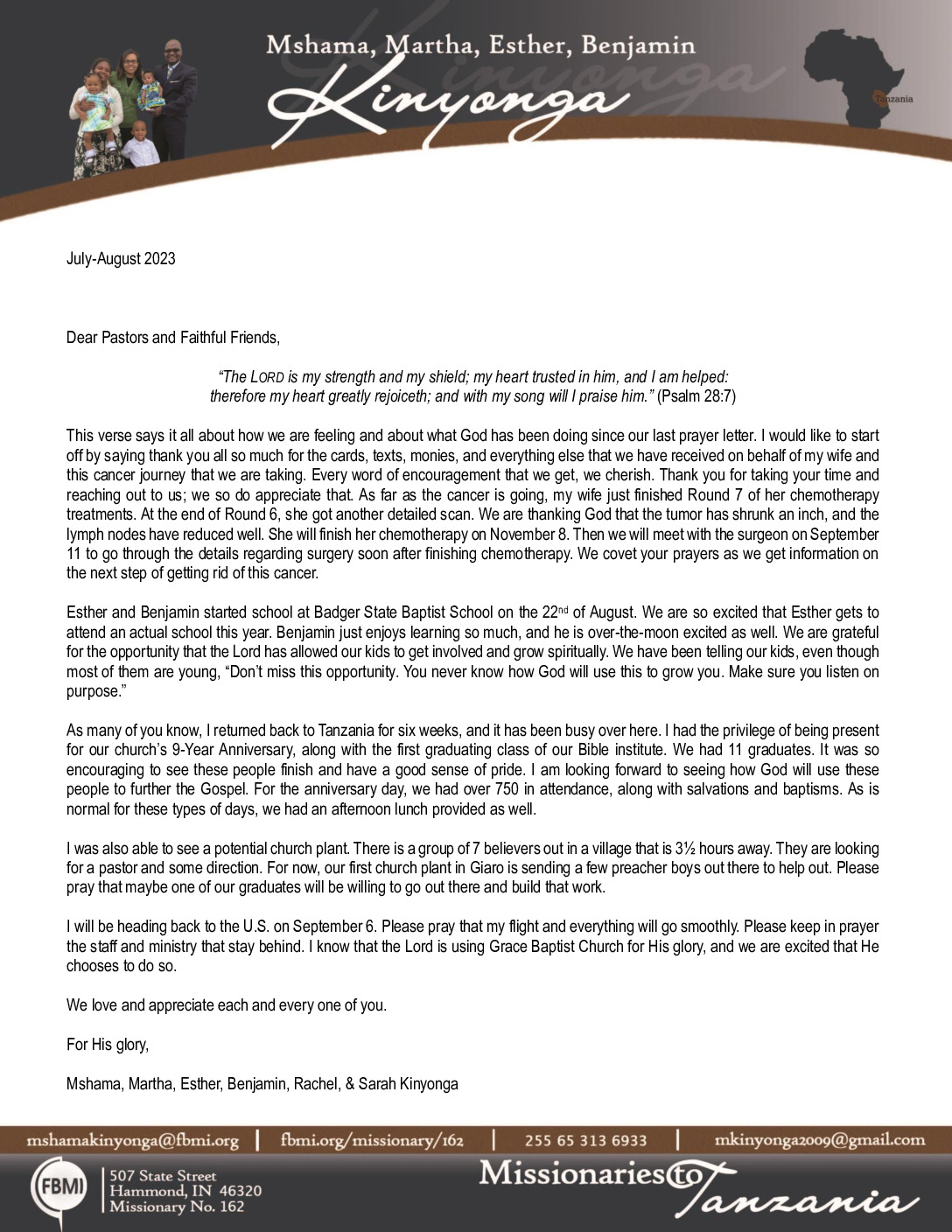 View Larger Image Mshama Kinyonga Jul-Aug 2023 Prayer Letter Proofreader2023-09-04T20:56:43-05:00September 4th, 2023| Share with others. FacebookXLinkedInEmail