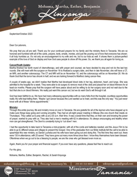 View Larger Image Mshama Kinyonga Sep-Oct 2023 Prayer Letter – Revised Proofreader2023-11-03T14:35:02-05:00November 3rd, 2023| Share with others. FacebookXLinkedInEmail