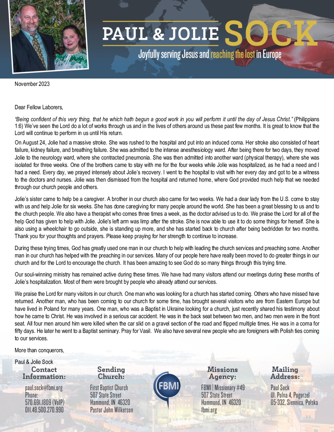 View Larger Image Paul Sock November 2023 Prayer Letter – Revised Proofreader2023-11-14T11:55:13-06:00November 14th, 2023| Share with others. FacebookXLinkedInEmail